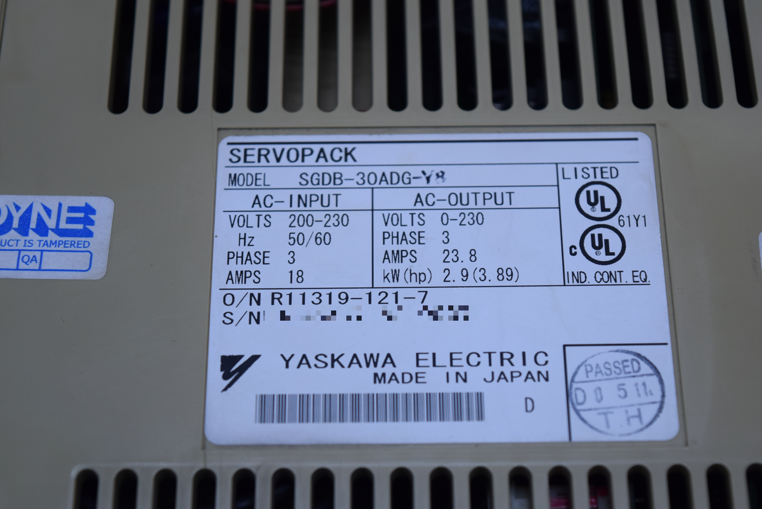 | 모델명 : SGDB-30ADG-Y8 품목명 : SERVO DRIVER 제조사 : YASKAWA |