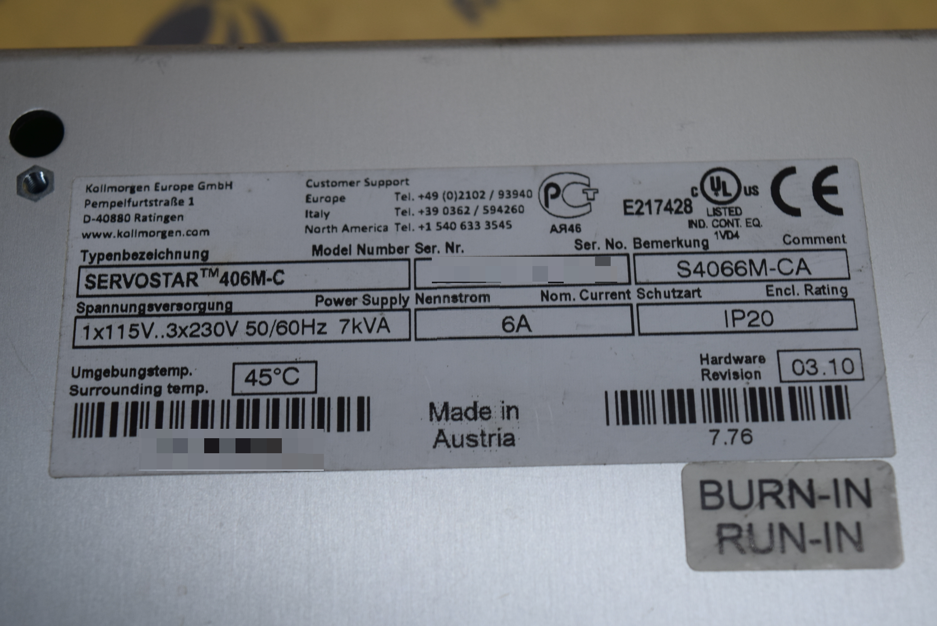 | 모델명 : SERVOSTAR 406M-C 품목명 : SERVO DRIVER 제조사 : KOLLMOGEN 증상 : 07 알람 발생 |