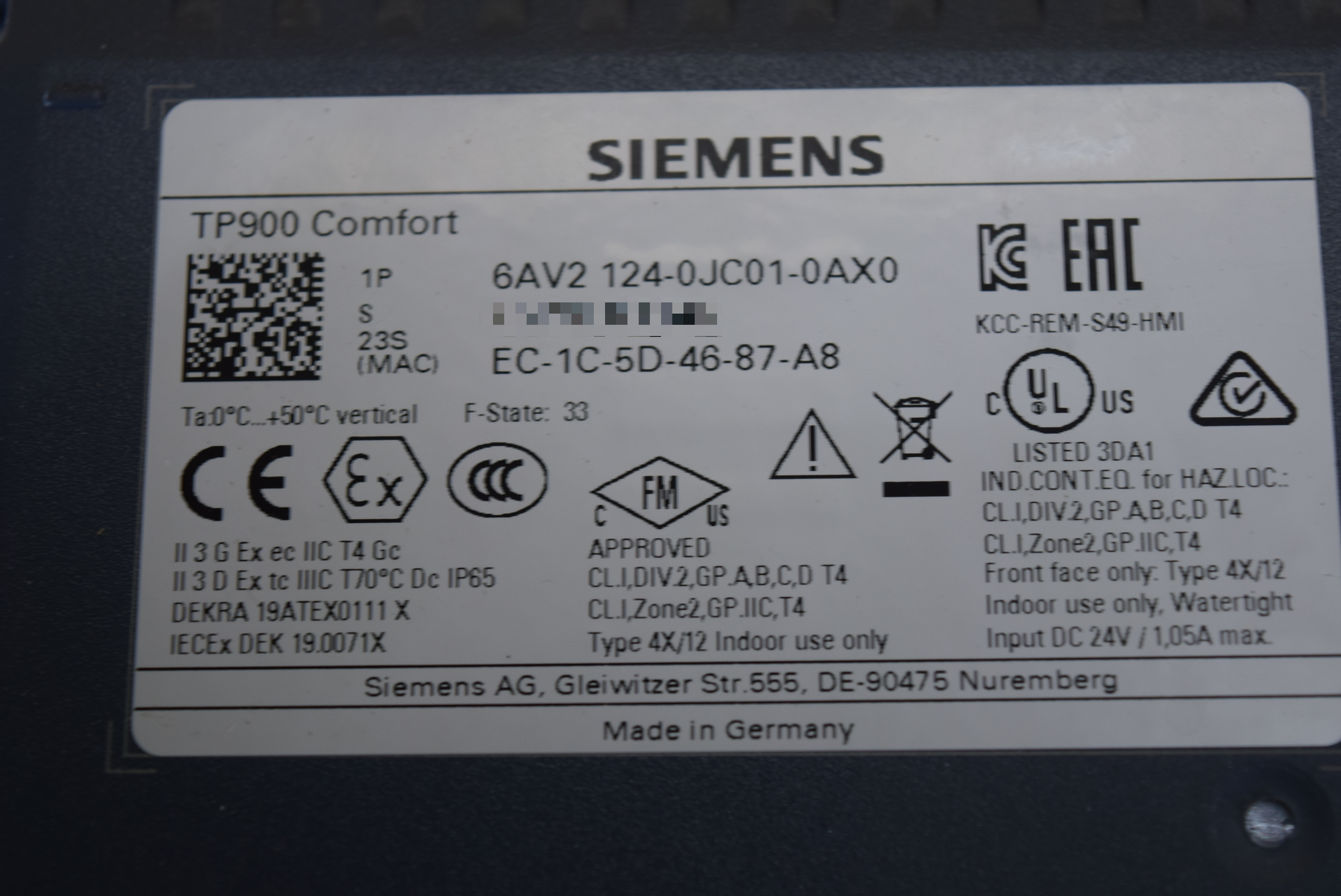 | 모델명 : 6AV2 124-0JC01-0AX0 품목명 : TOUCH PANEL 제조사 : SIEMENS 증상: 터치 불량 |