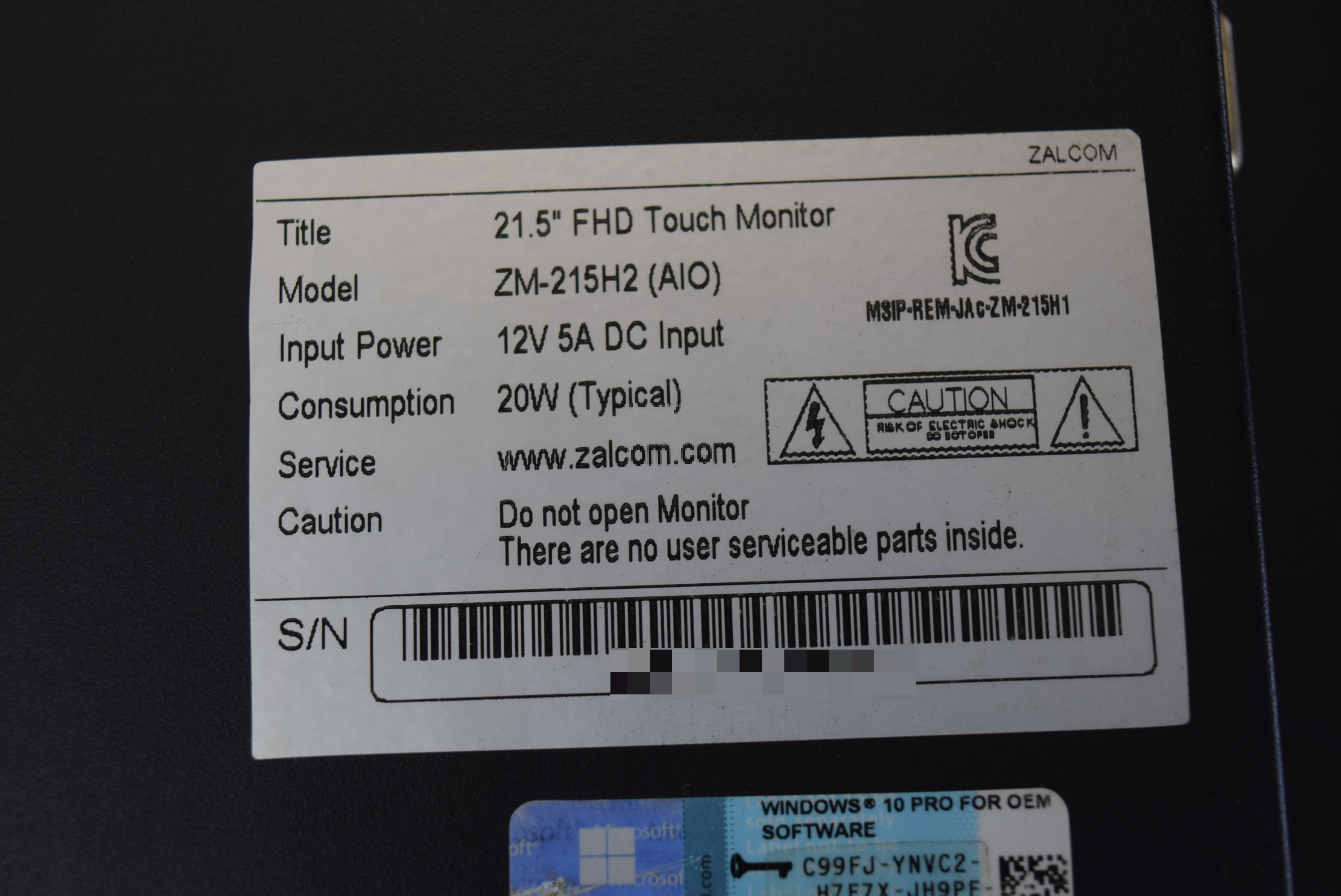 | 모델명 : ZM-215H2(AIO) 품목명 : TOUCH PANEL 제조사 : ZALCOM 증상 : 제품 파손 |