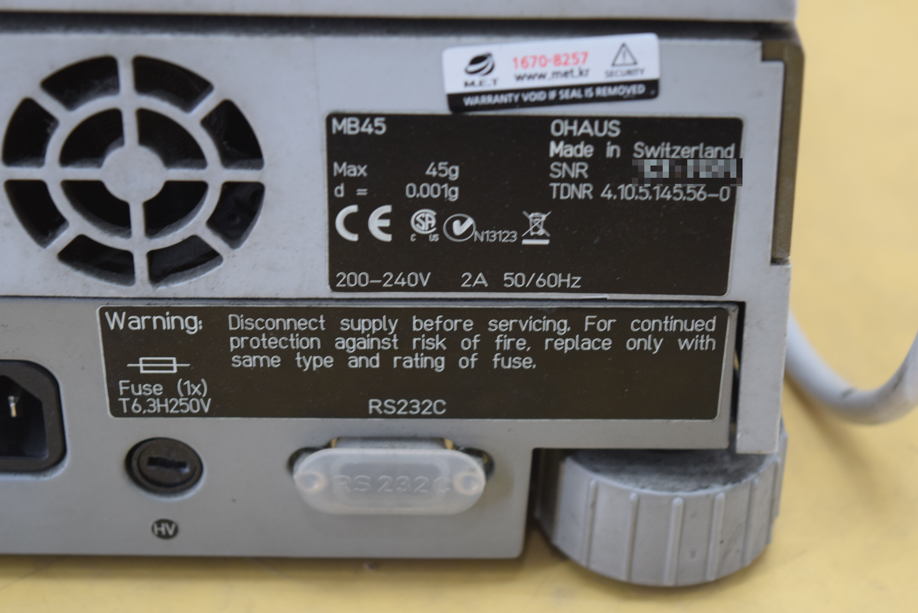 | 모델명 : MB45 품목명 : Moisture Analyzer 제조사 : OHAUS 증상 : 전원 및 버튼 불량 |