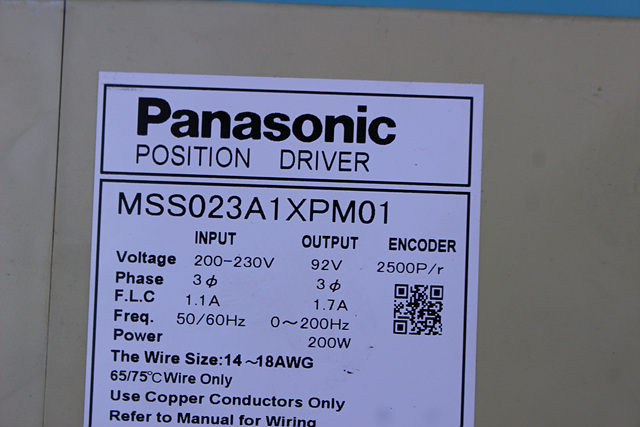 MANUFACTURER : PANASONIC MODEL : SERVO DRIVE MSS023A1XPM01