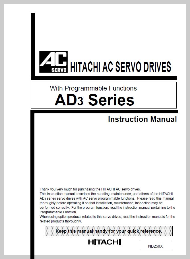 HITACHI AC SERVO DRIVES AD3 Series Manual 입니다.