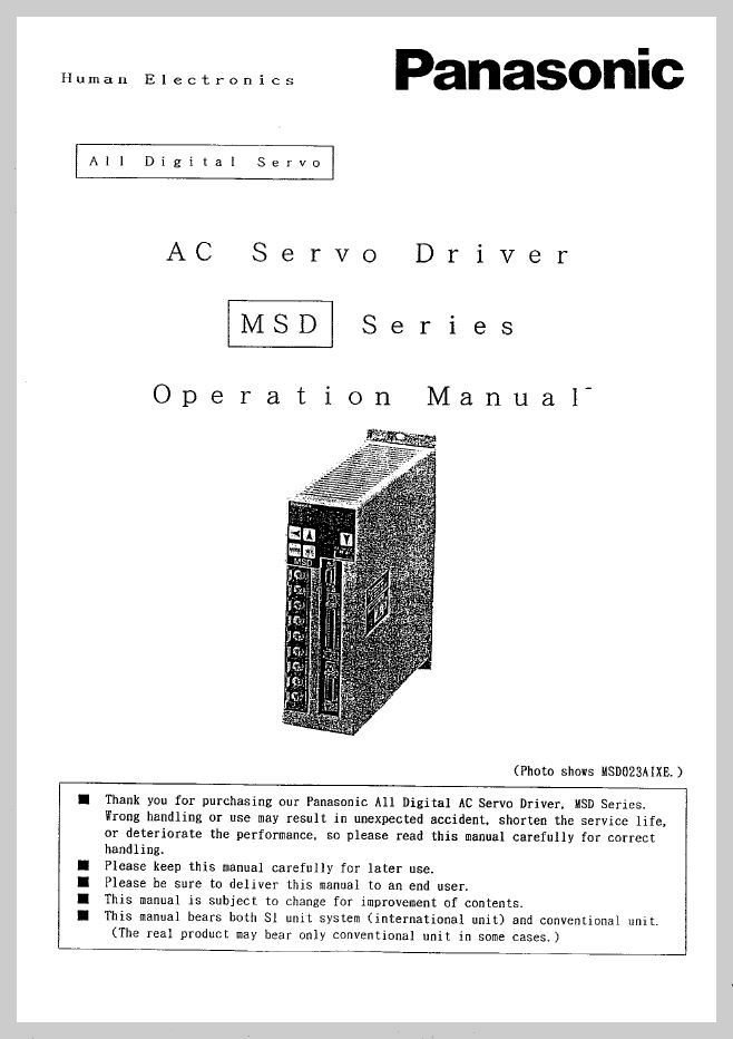 PANASONIC MSD Series Manual 입니다.