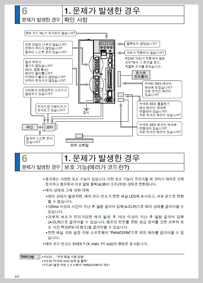 알람 및 트러블 슈팅 항목은 매뉴얼 6-1장에서 확인 가능합니다.