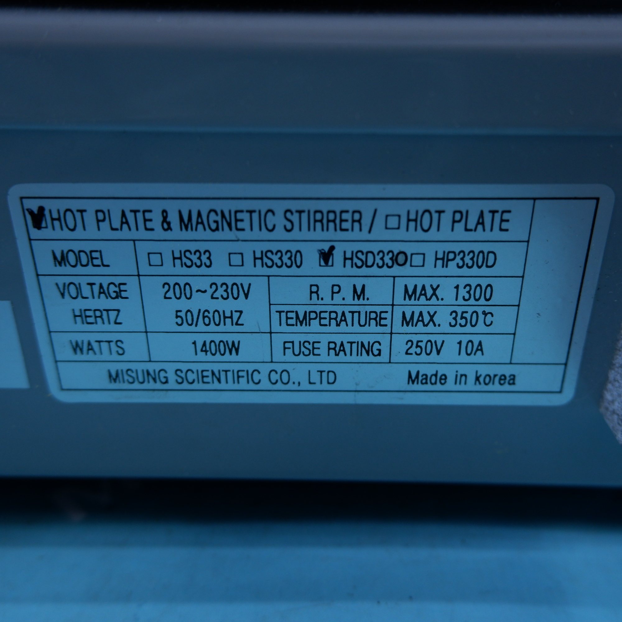 제조사 : MISUNG 모델명 : HOT PLATE HSD330