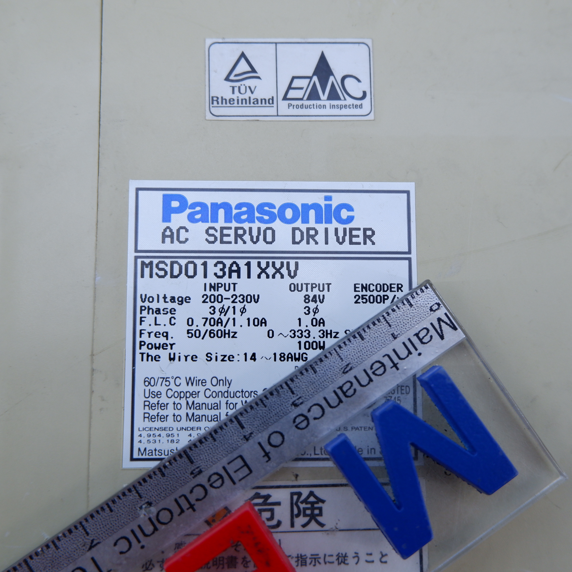 MANUFACTURER : PANASONIC MODEL : AC SERVO DRIVER MSD013A1XXV