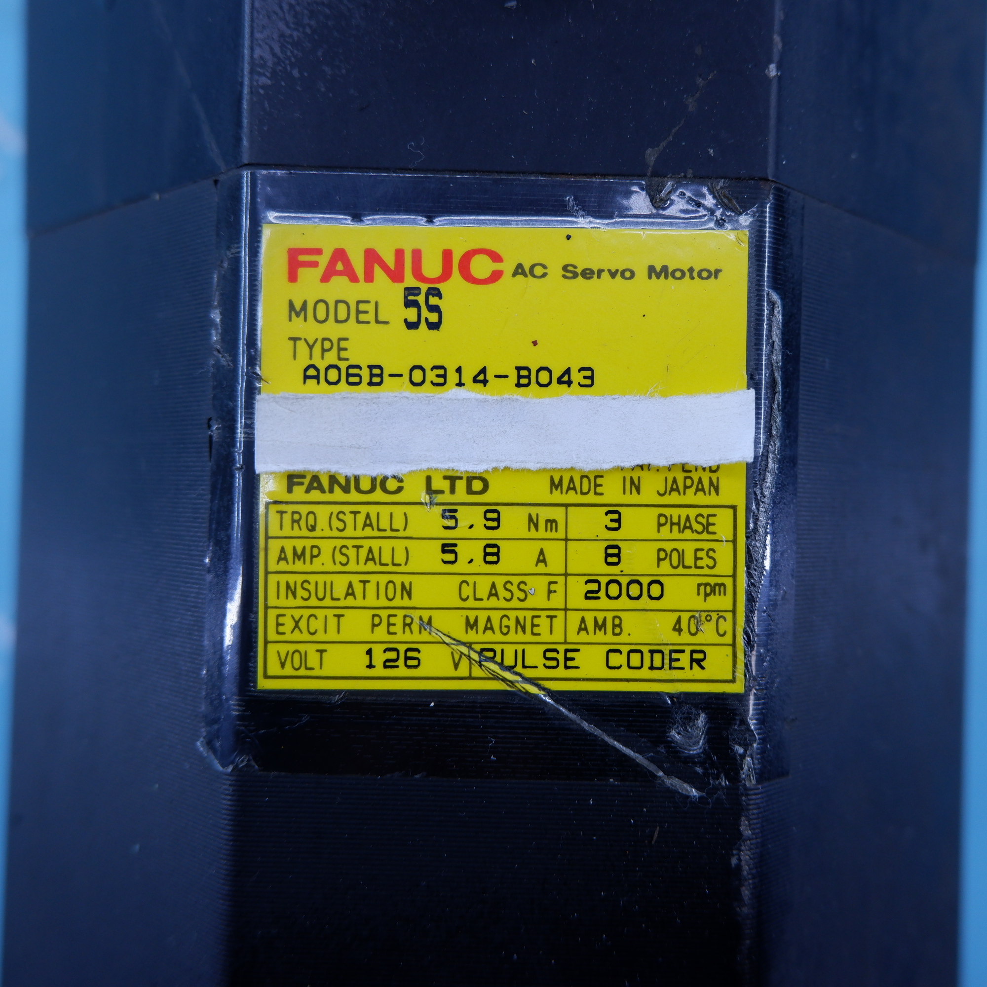 MANUFACTURER : FANUC MODEL : AC SERVO MOTOR 5S A06B-0314-B043
