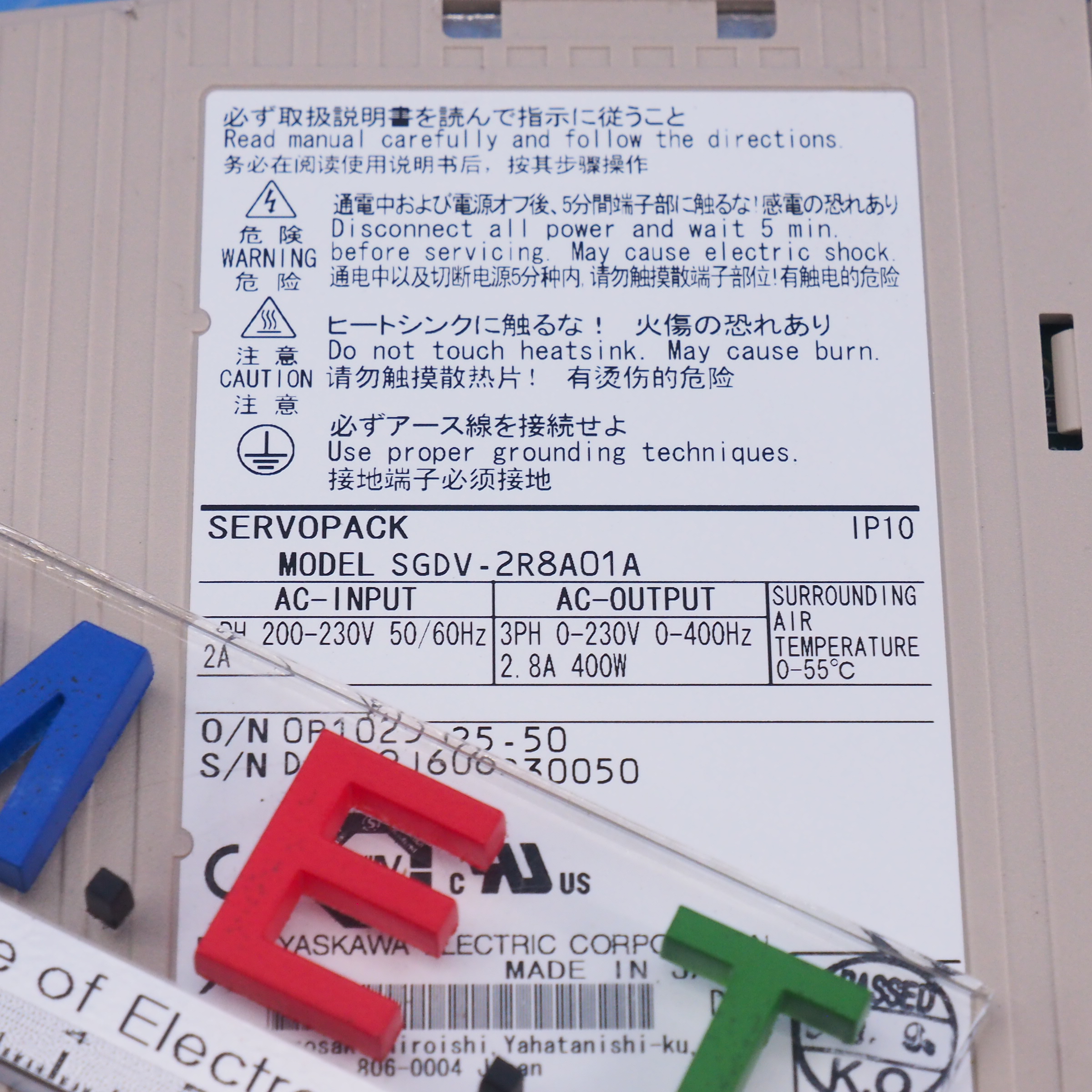 MANUFACTURER : YASKAWA MODEL : SERVOPACK SIGMA-V 400W SGDV-2R8A01A