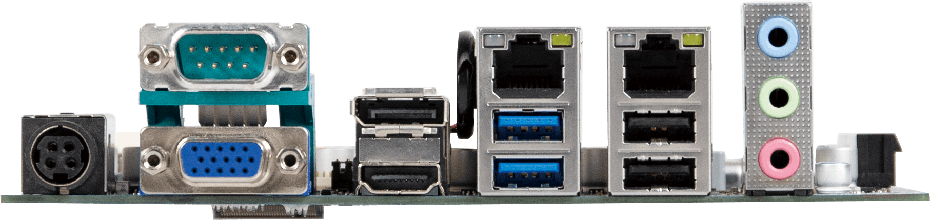 | Rear I/O | 3 x Audio jacks (Line in, Line out, Mic in) 1 x COM port (RS-232/422/485 and RI/5V/12V) 1 x HDMI 1 x Display Port 1 x VGA 2 x RJ45 LAN ports 2 x USB 2.0 2 x USB 3.0 1 x DC Jack (+12/+19/+24VDC) |