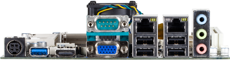 | Rear I/O | 3 x Audio jacks (Line in, Line out, Mic in) 1 x COM port (RS-232) 1 x HDMI 1 x VGA 2 x RJ45 LAN ports 4 x USB 2.0 1 x USB 3.0 1 x DC Jack (+12VDC) |