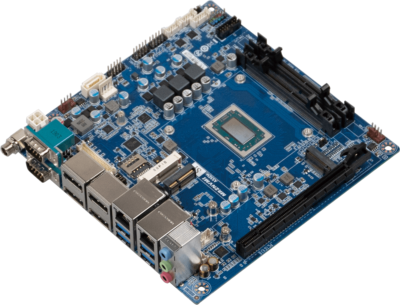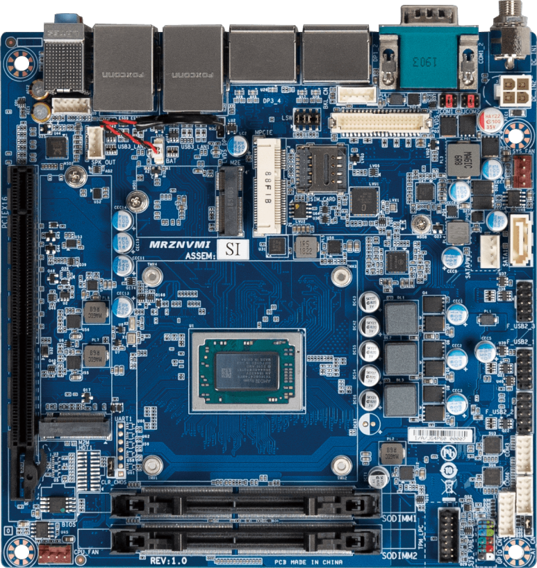 Mini-ITX Embedded Motherboard with AMD Ryzen™ V1605B Embedded Processor, Dual Channel DDR4 memory, PCIe, 4 x COM, 1 x SATA 6Gb/s, 10 x USB