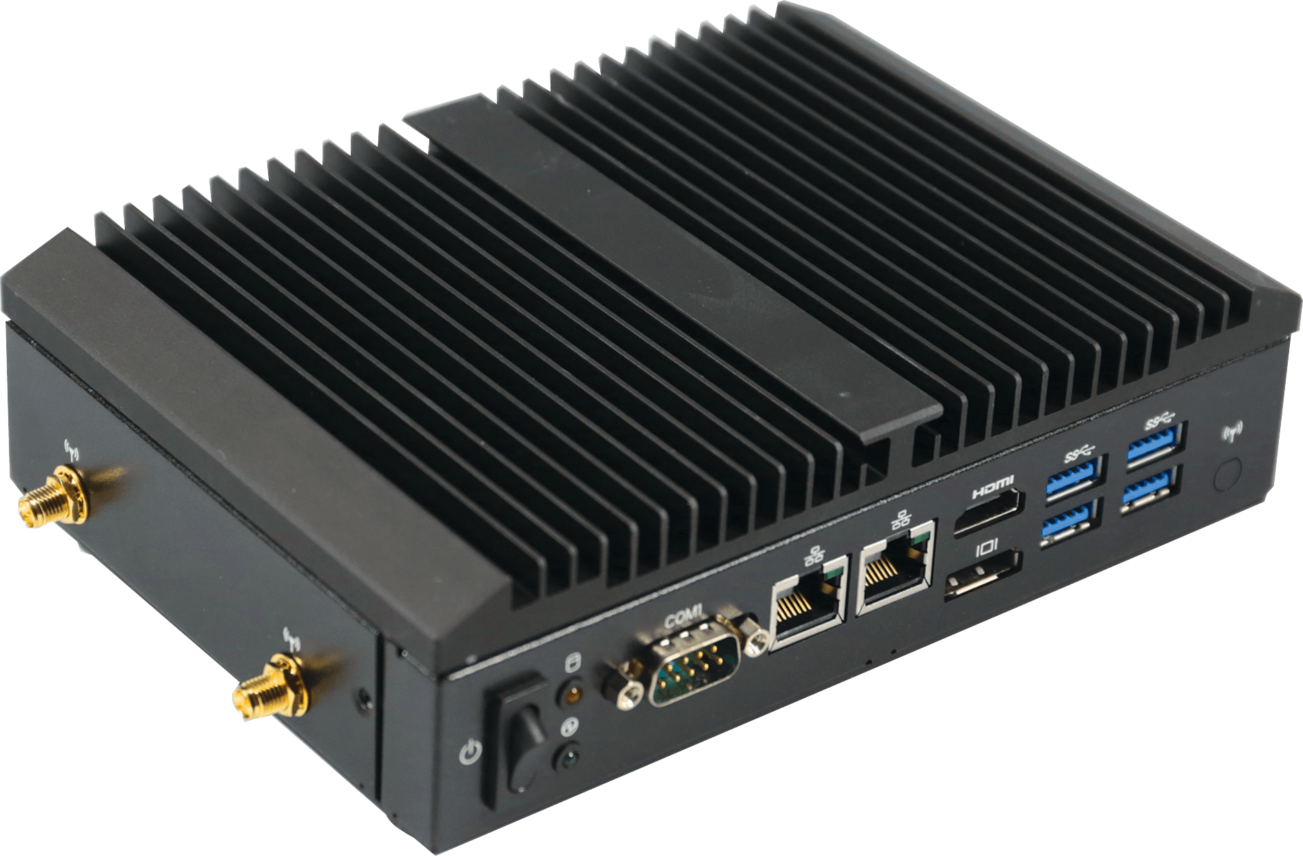 | Front I/O | 2 x RJ45 LAN ports 4 x USB 3.0 1 x HDMI 1 x Display Port 1 x Power switch 1 x Power & HDD LED 1 x COM port (RS-422/485/232 and RI/5V/12V) |