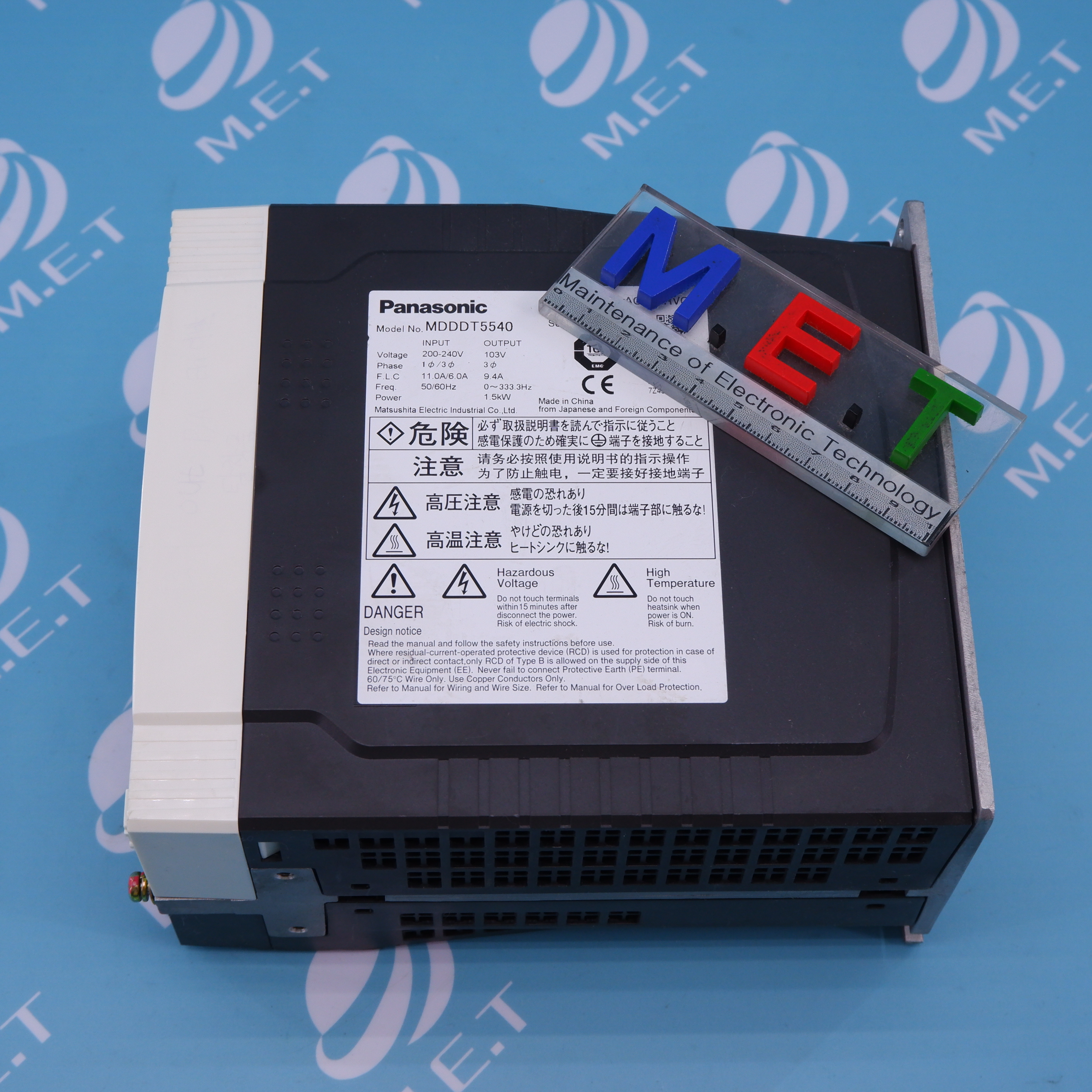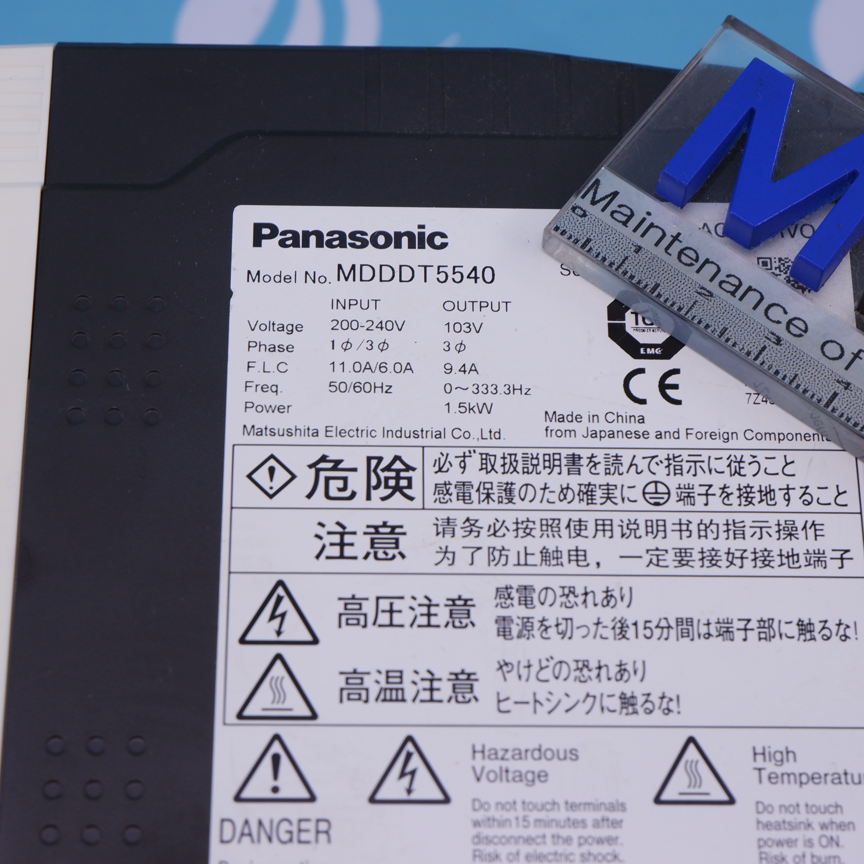 MANUFACTURER : PANASONIC MODEL : AC SERVO DRIVER 103V 1.5KW MDDDT5540
