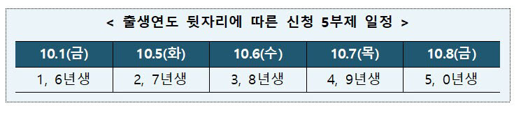 첫 일주일간은 출생연도 뒷자리에 따라 5부제로 운영하고,