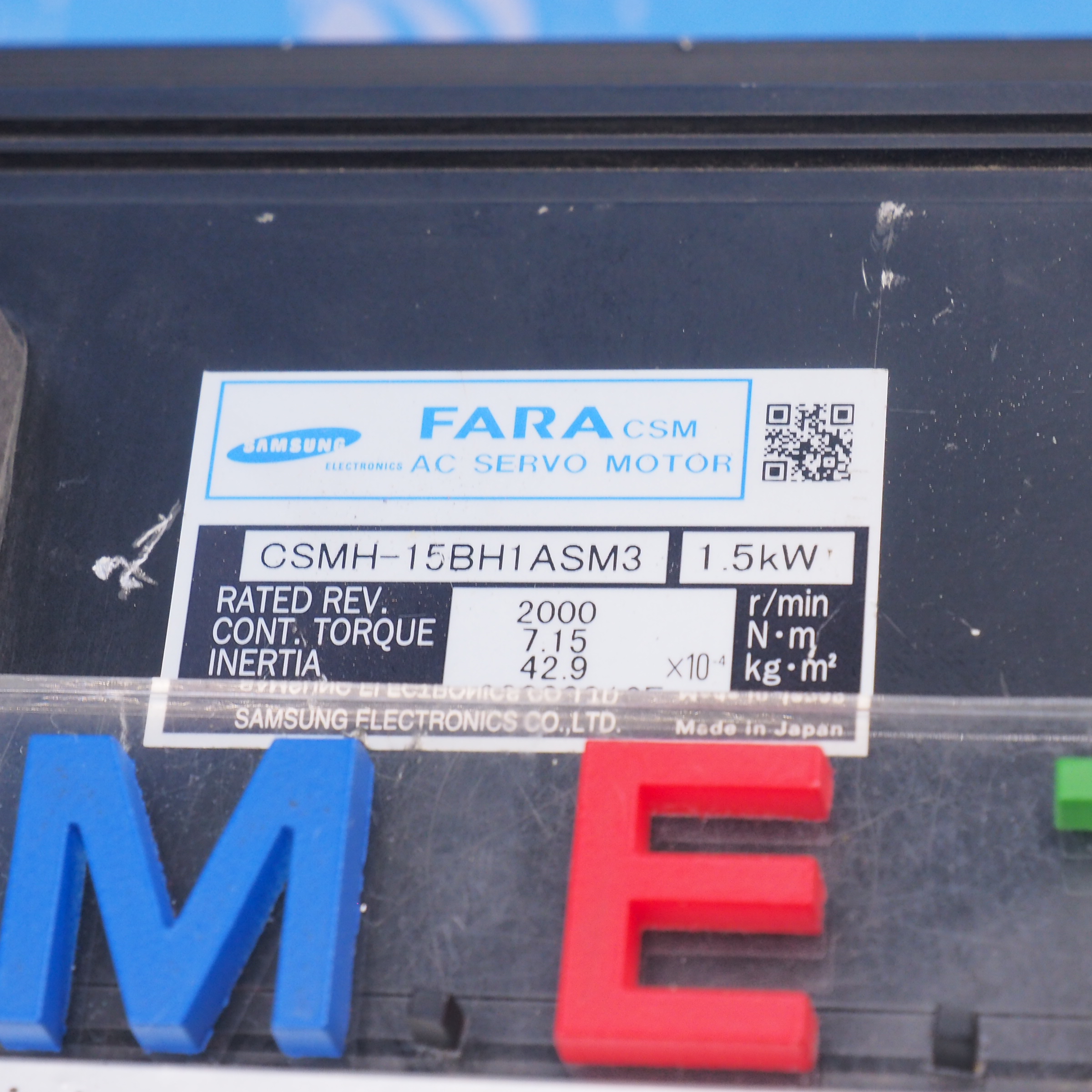 MANUFACTURER : SAMSUNG MODEL : FARA CSM 1.5KW AC SERVO MOTOR CSMH-15BH1ASM3