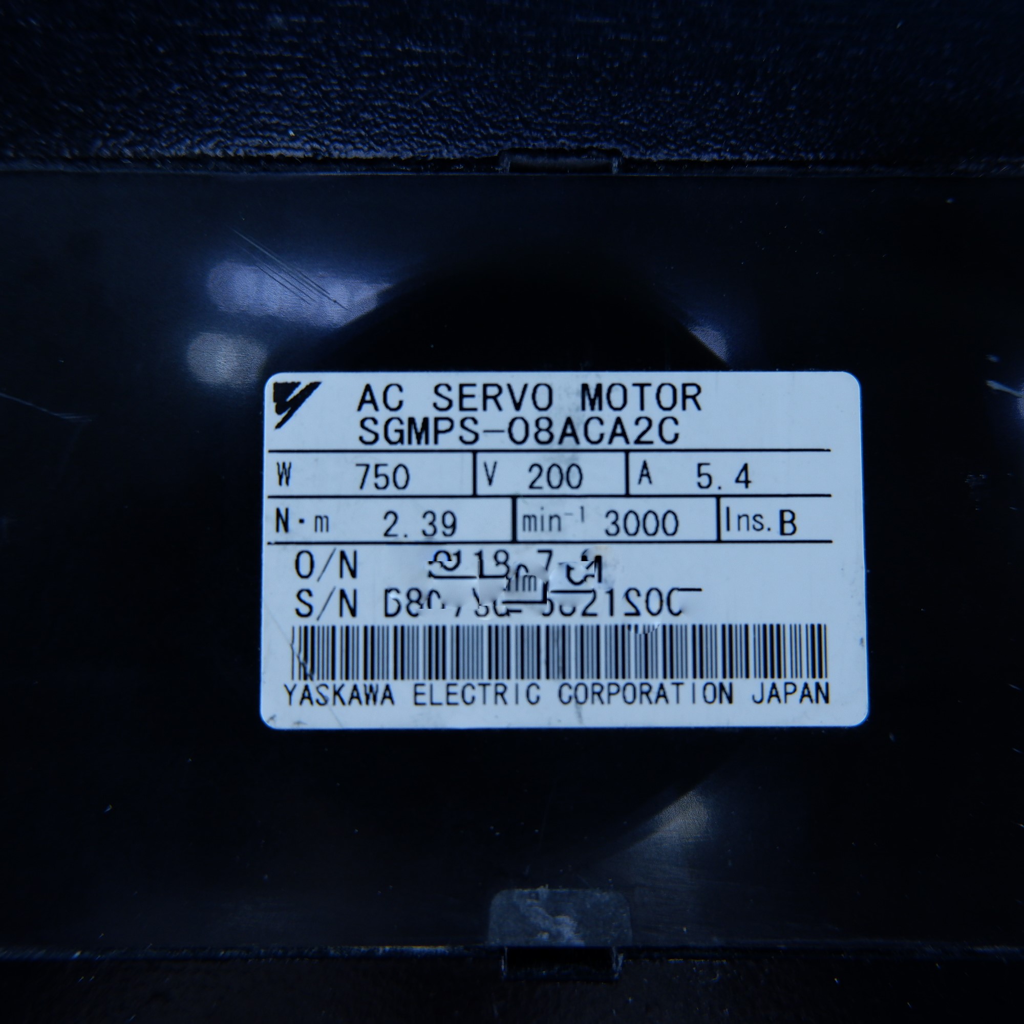 MANUFACTURER : YASKAWA MODEL : AC SERVO MOTOR SGMPS-08ACA2C