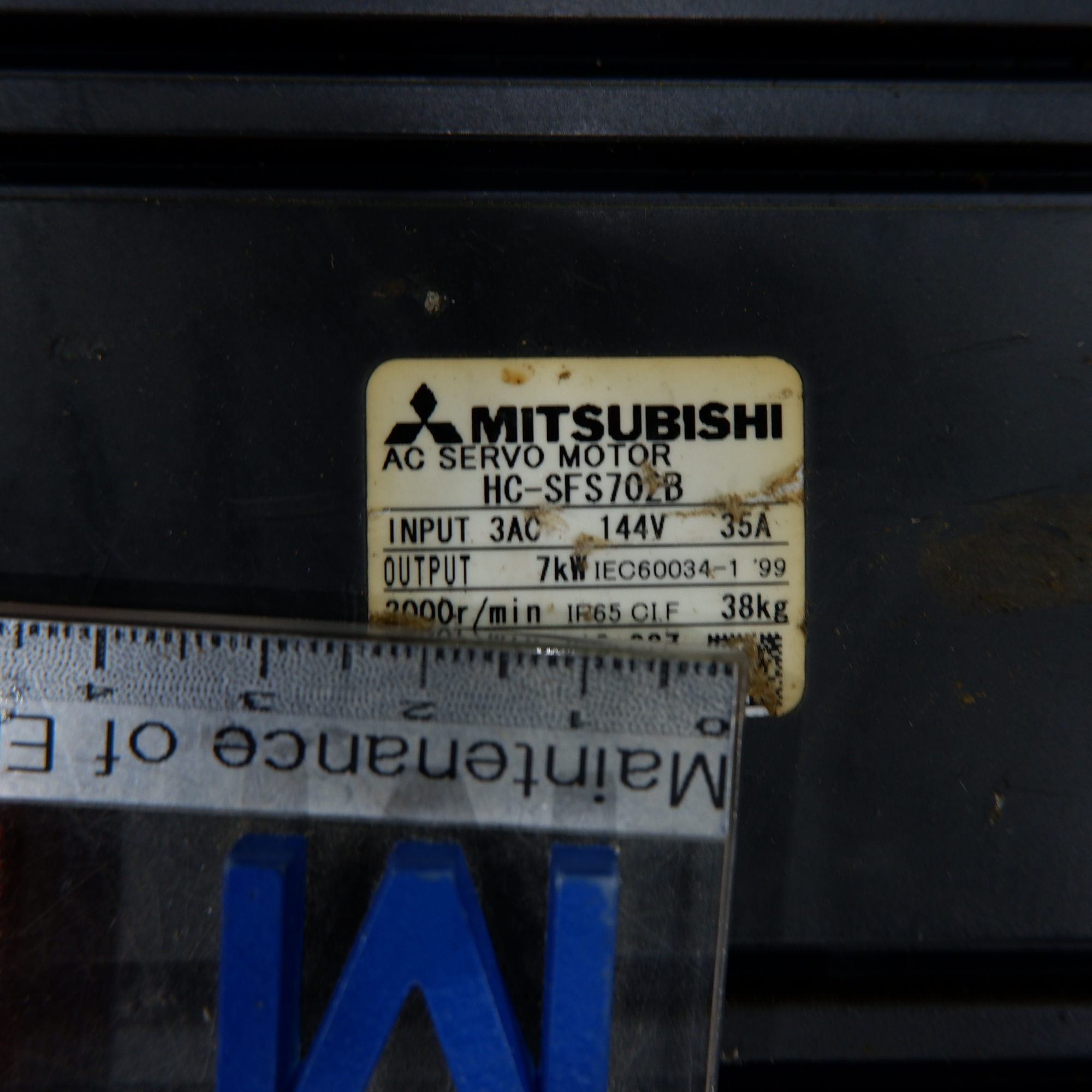 MANUFACTURER : MITSUBISHI MODEL : AC SERVO MOTOR HC-SFS702B