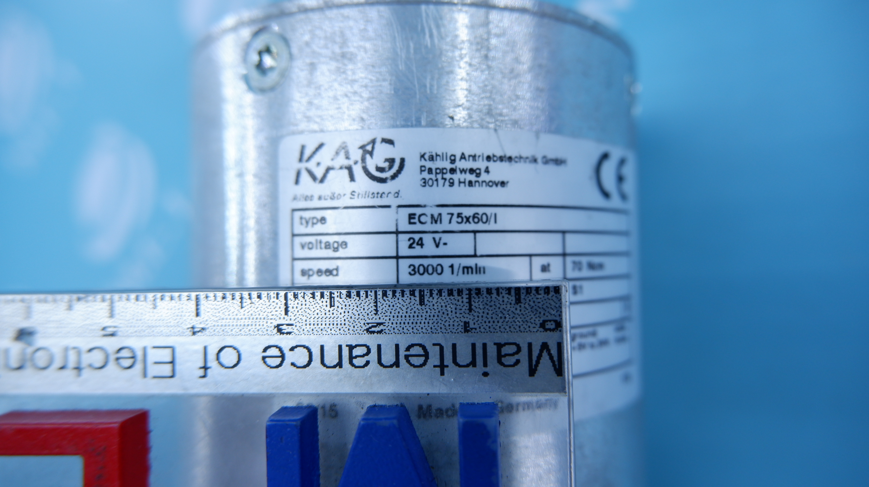 MANUFACTURER : KAG MODEL : MOTOR ECM75X60/I