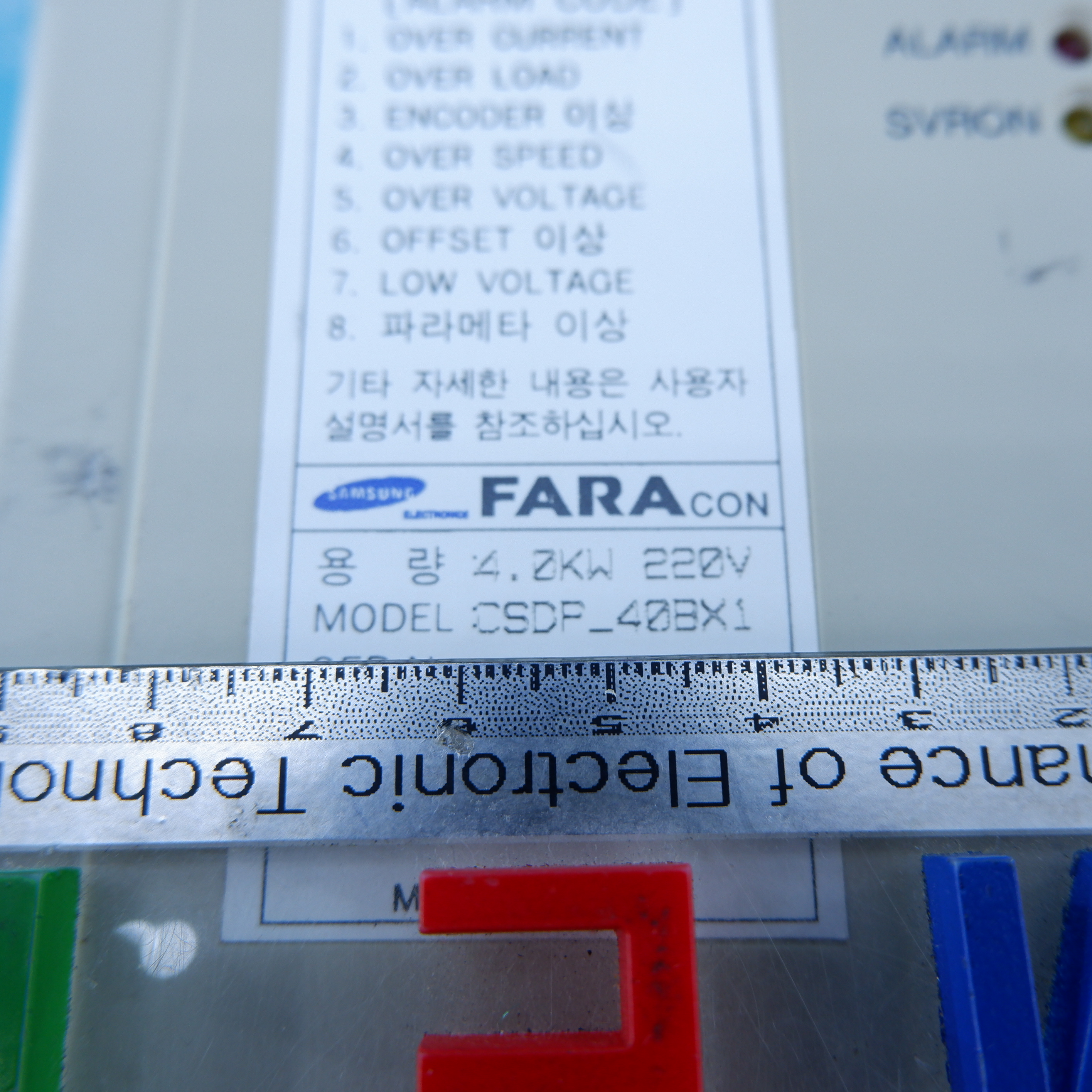 MANUFACTURER : SAMSUNG MODEL : FARACON SERVO DRIVE 4.0KW CSDP-40BX1(NO COVER)