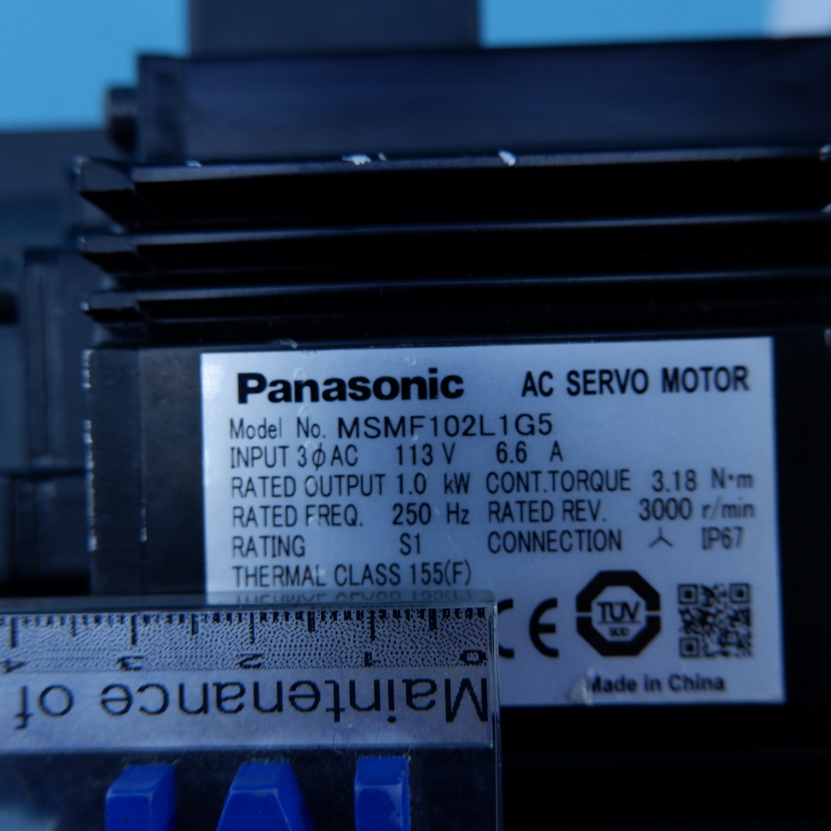 MANUFACTURER : PANASONIC   MODEL : AC SERVO MOTOR MSMF102L1G5