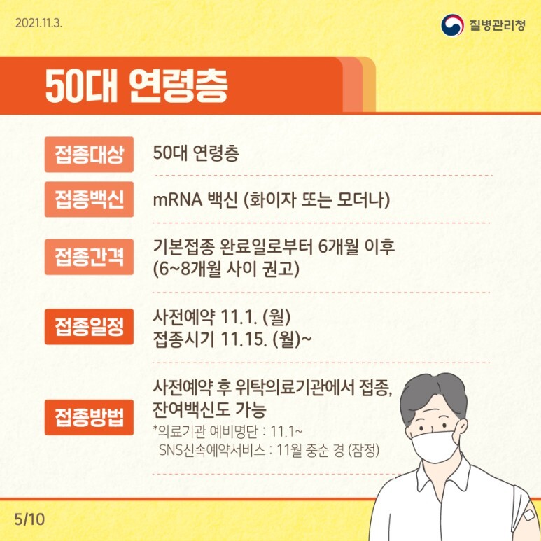 15일 부터는 50대 연령층과 기저질환자, 우선접종 직업군 등의