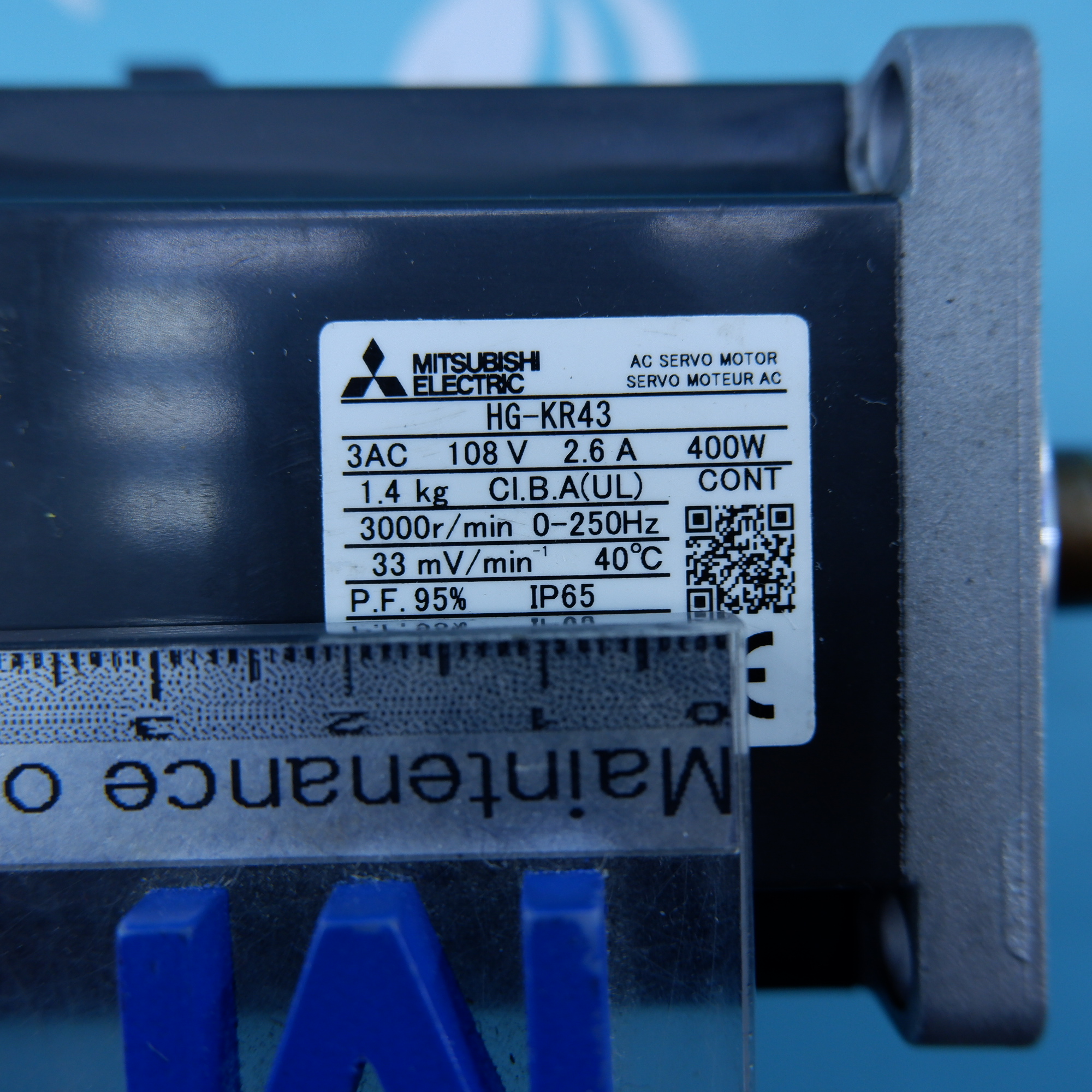 MANUFACTURER : MITSUBISHI MODEL : 400W 2.6A AC SERVO MOTOR HG-KR43