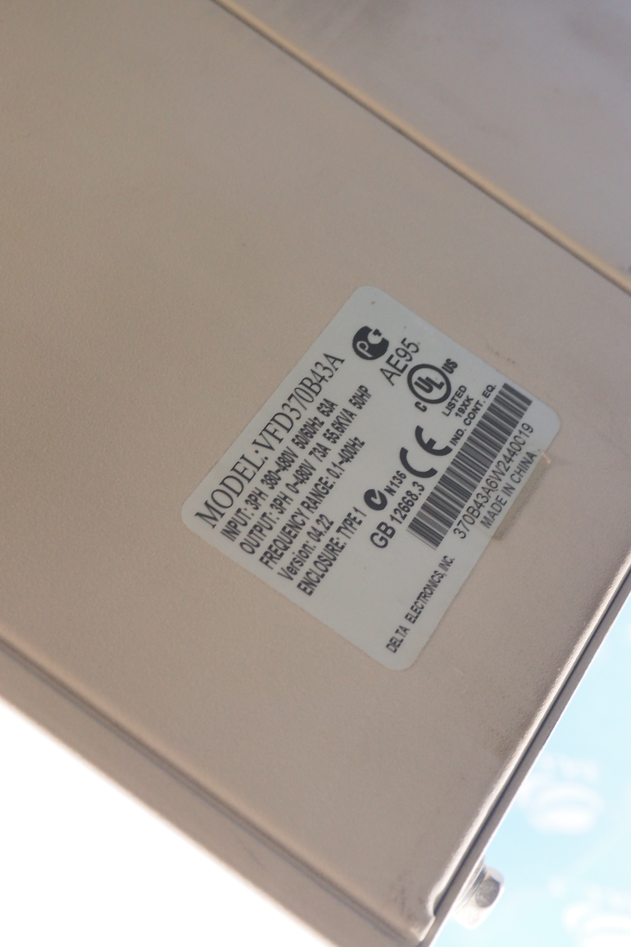 MANUFACTURER : DELTA MODEL : VFD-B 50HP VFD370B43A