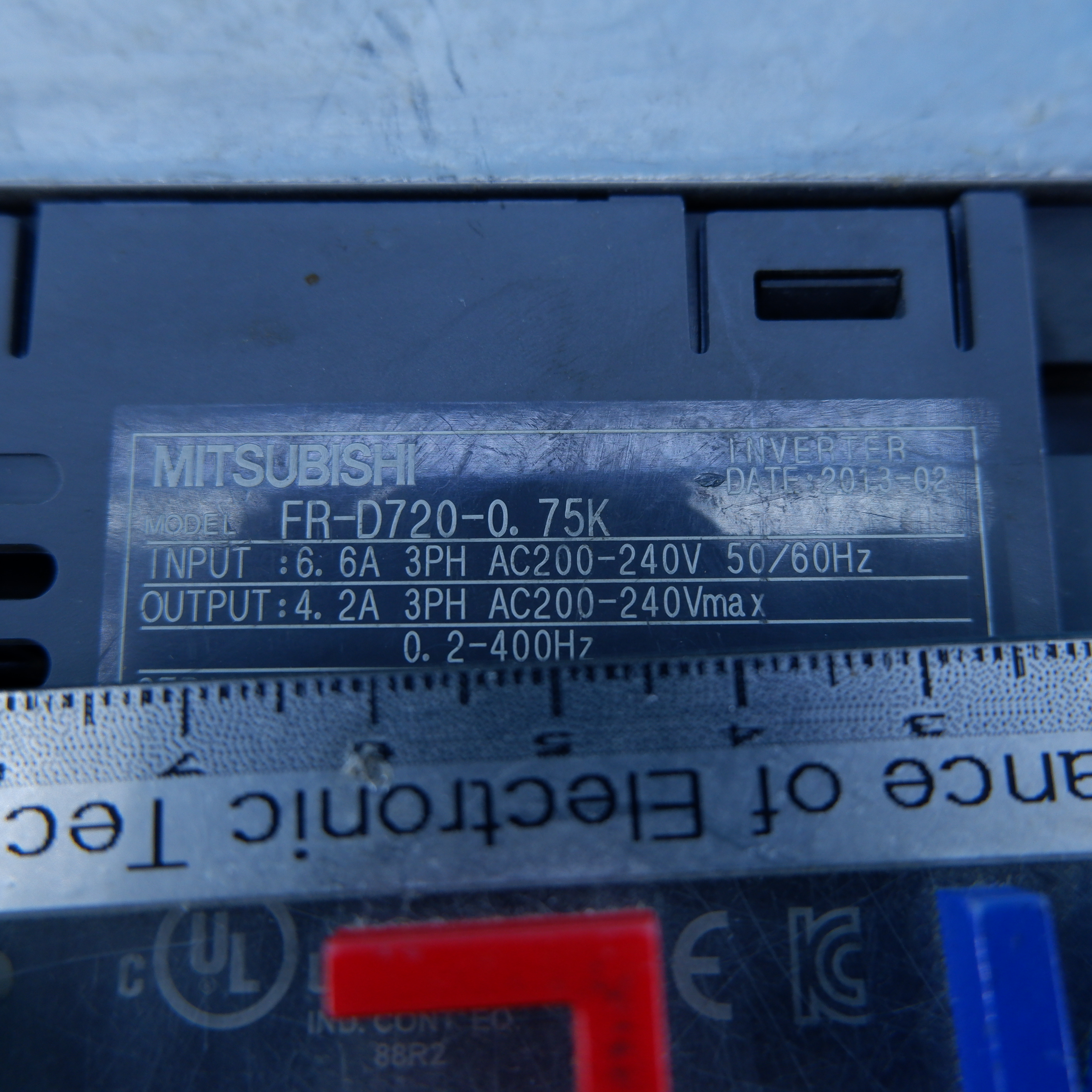 MANUFACTURER : MITSUBISHI MODEL : FREQROL-D700 INVERTER FR-D720-0.75K(NO COVER)