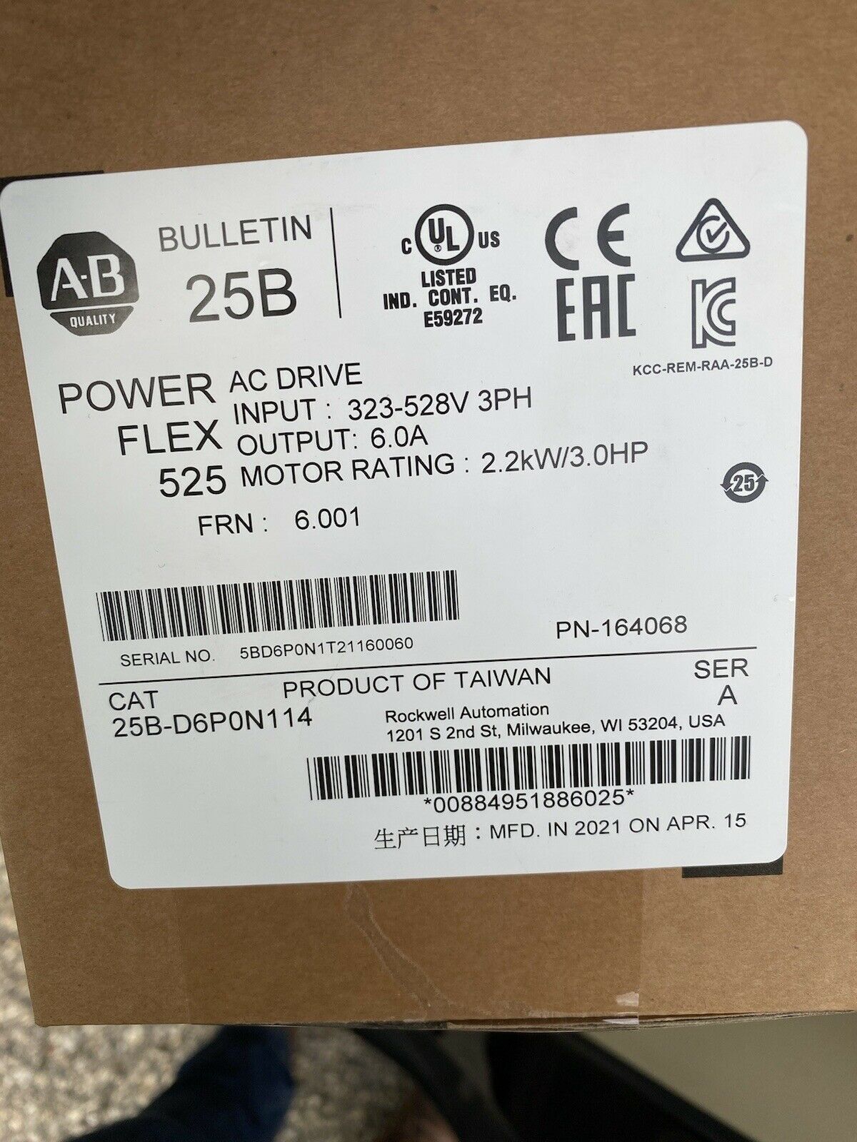 Allen Bradley PowerFlex Inverter VFD 25B-D6P0N114 AC Drive 알랜브래들리