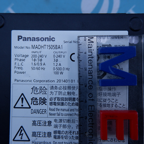 MANUFACTURER : PANASONIC MODEL : AC SERVO DRIVER MADHT1505BA1
