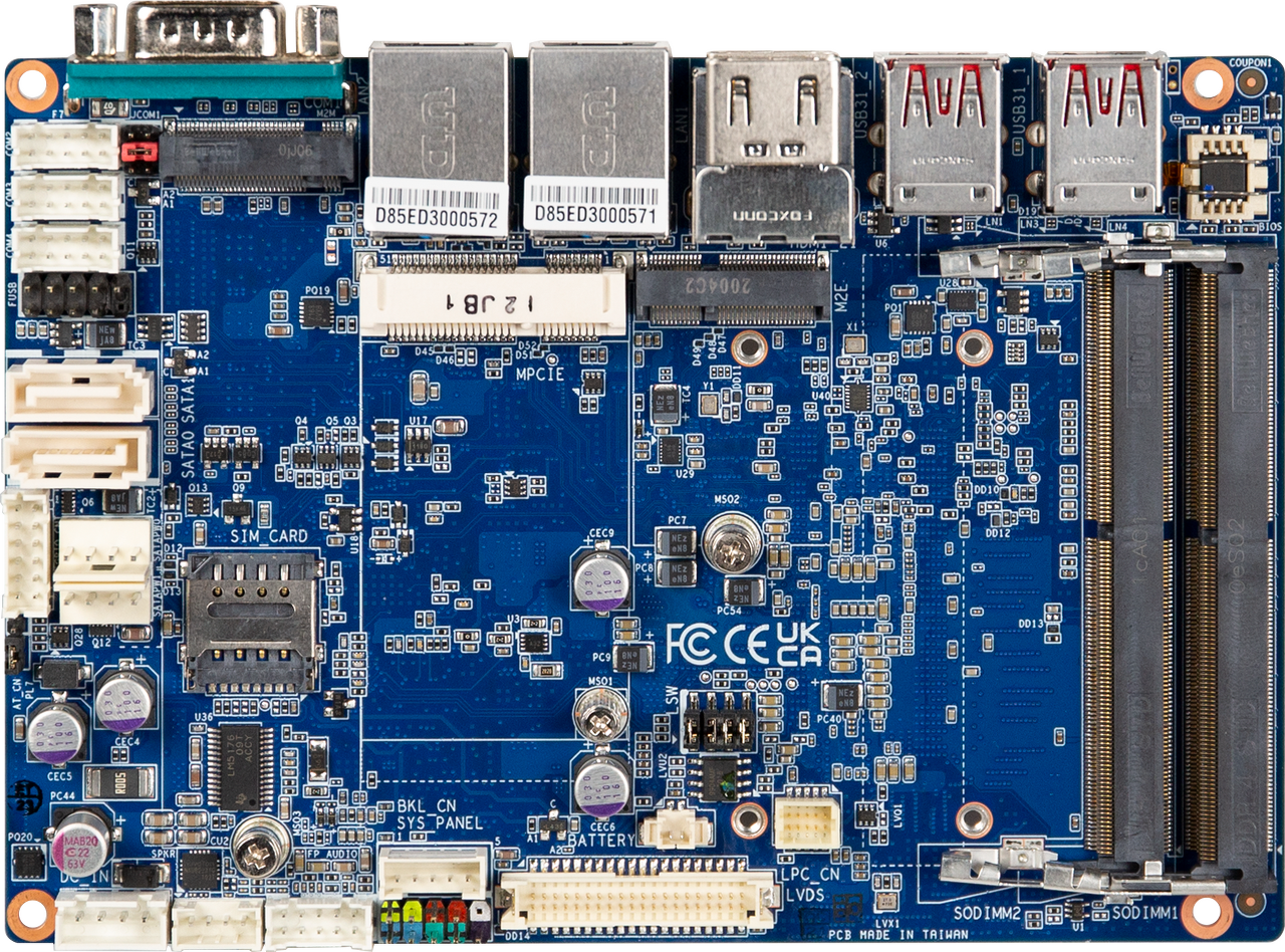3.5” SubCompact Board with 8th Generation Intel® Core™ i7-8665UE Processor, Dual Channel DDR4 memory, 4 x COM, 2 x SATA 6Gb/s, 4 x USB 3.2 Gen 2x1, 2 x USB 2.0