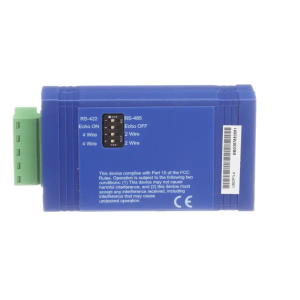 Model BB-USOPTL4 is a USB to one port RS-422/485 converters. Supporting 2-wire RS-485 or 4-wire RS-422/485 communications, these devices are great for applications requiring long range or multi-drop capabilities. Both models use pluggable terminal blocks on the RS-422/485 side. Two LEDs indicate data transmit or receive. Model BB-USOPTL4 includes circuitry with 2000 Volts isolation protection against ground loops and voltage spikes. Both products draw power from the USB port so no power supply is required. Simply install the drivers supplied on CD ROM and plug the converter into an available USB port on your computer or USB hub. The device show ups as an additional COM port in the Windows Device Manager, and is compatible with Windows applications.