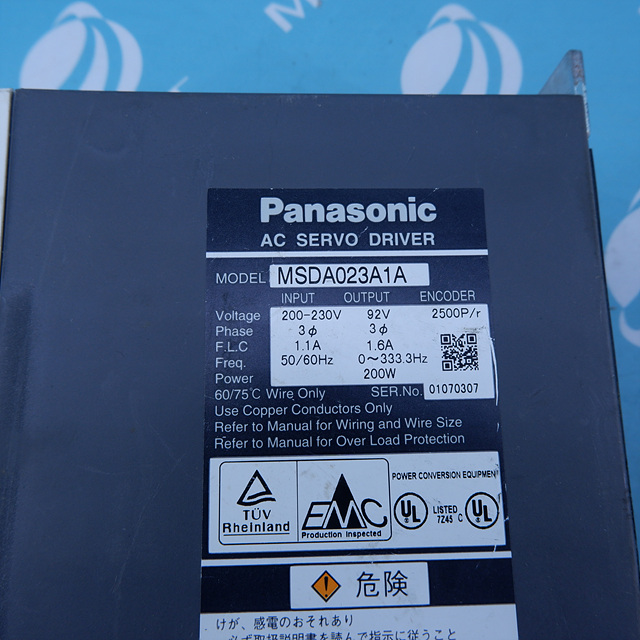 MANUFACTURER : PANASONIC MODEL : AC SERVO DRIVER MSDA023A1A
