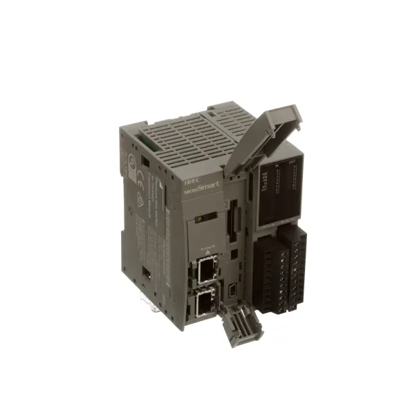 The MicroSmart FC6A series is available in two types of CPUs: Plus and All-in-One. The Plus type has a dual RJ45 Ethernet port, embedded web server functions and the capability to expand up to 2060 I/O, while the All-in-One type has an embedded serial port and RJ45 Ethernet port capable of expanding up to 520 I/O.