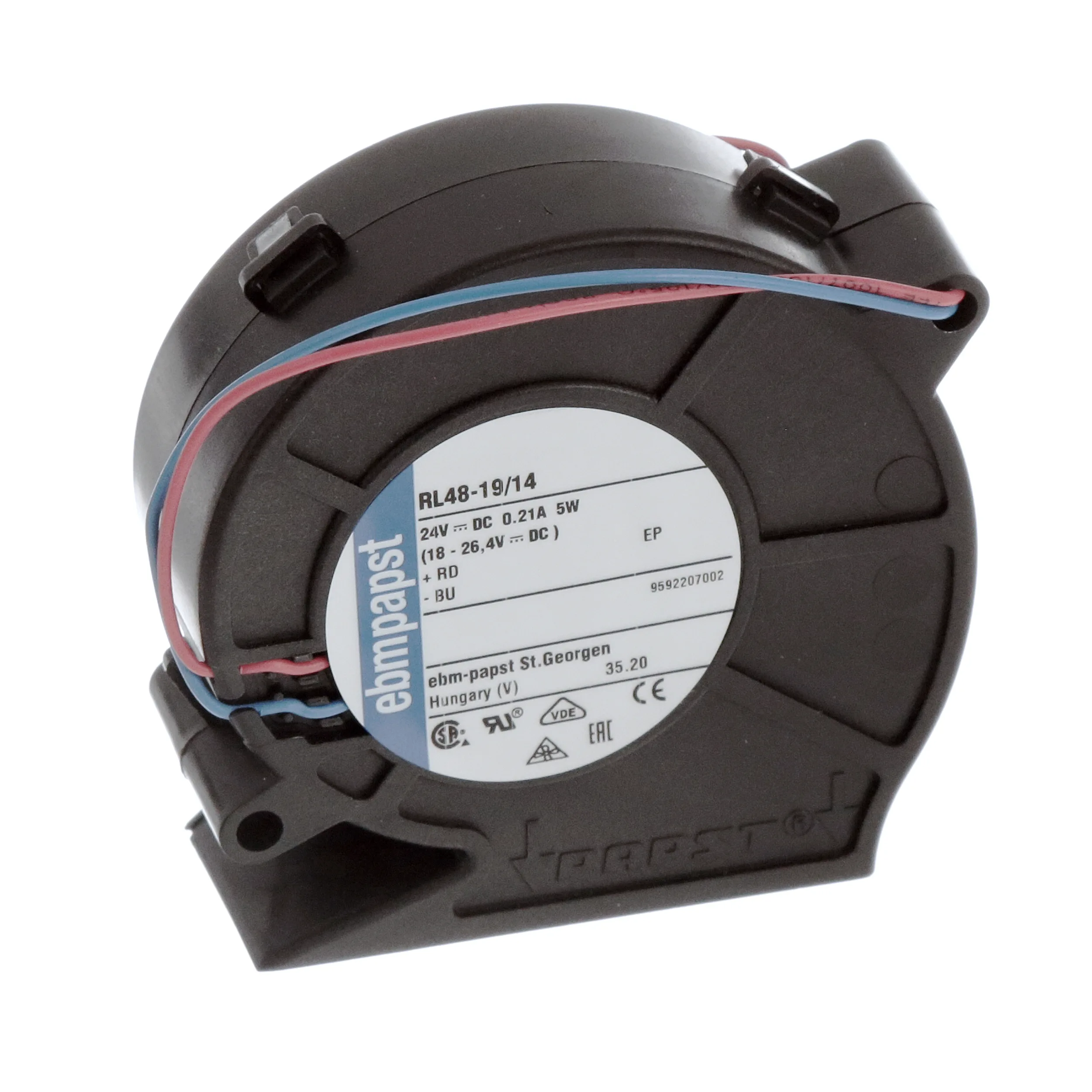 ebm-papst RL48-19/14 Flatpack Radial Blower, 24VDC, 76x27mm, ball, 16.5cfm, 5W, 51dBA