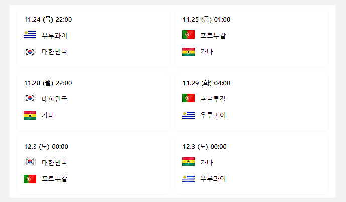 우리나라를 포함한 H조 경기 일정을 참고하시어,