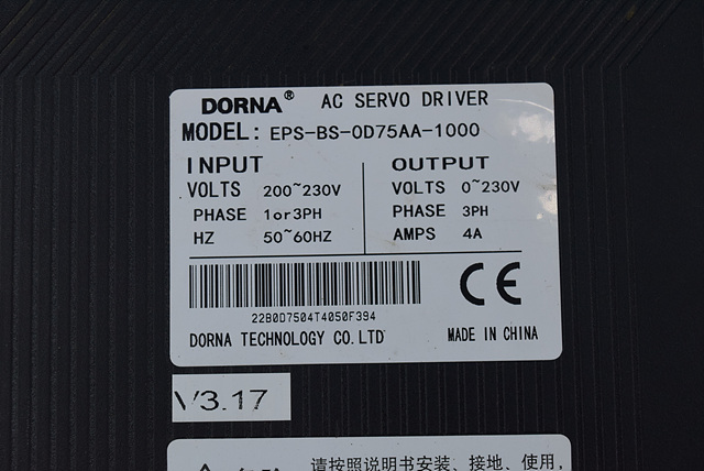 MANUFACTURER : DORNA MODEL : AC SERVO DRIVE EPS-BS-0D75AA-1000