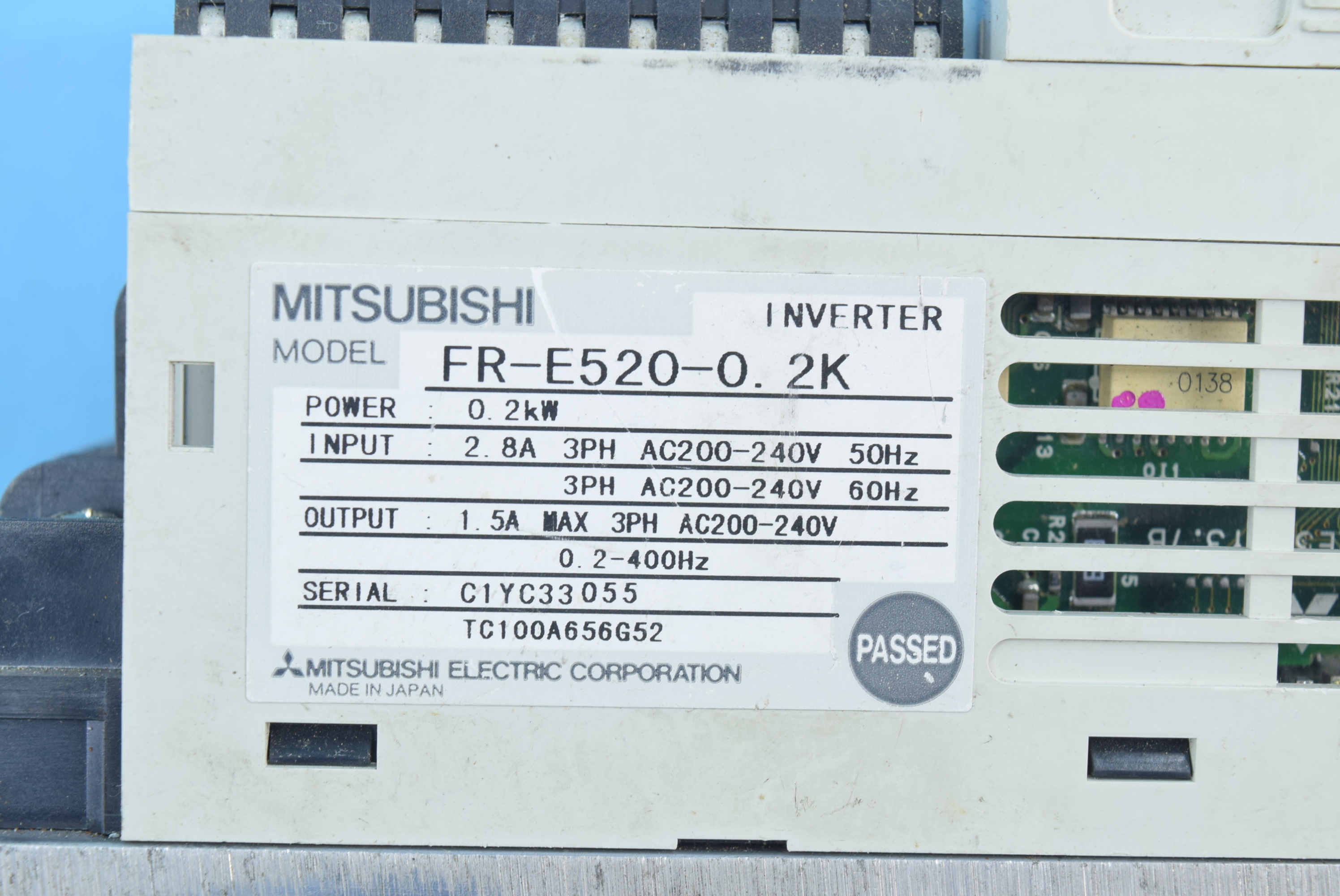 MANUFACTURER : MITSUBISHI MODEL : FREQROL-E500 0.2KW INVERTER FR-E520-0.2K (NO COVER)