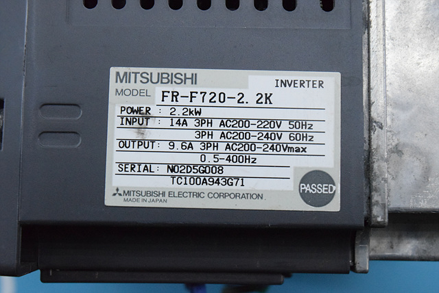MANUFACTURER : MITSUBISHI MODEL : INVERTER FR-F720-2.2K (NO KEY PAD)