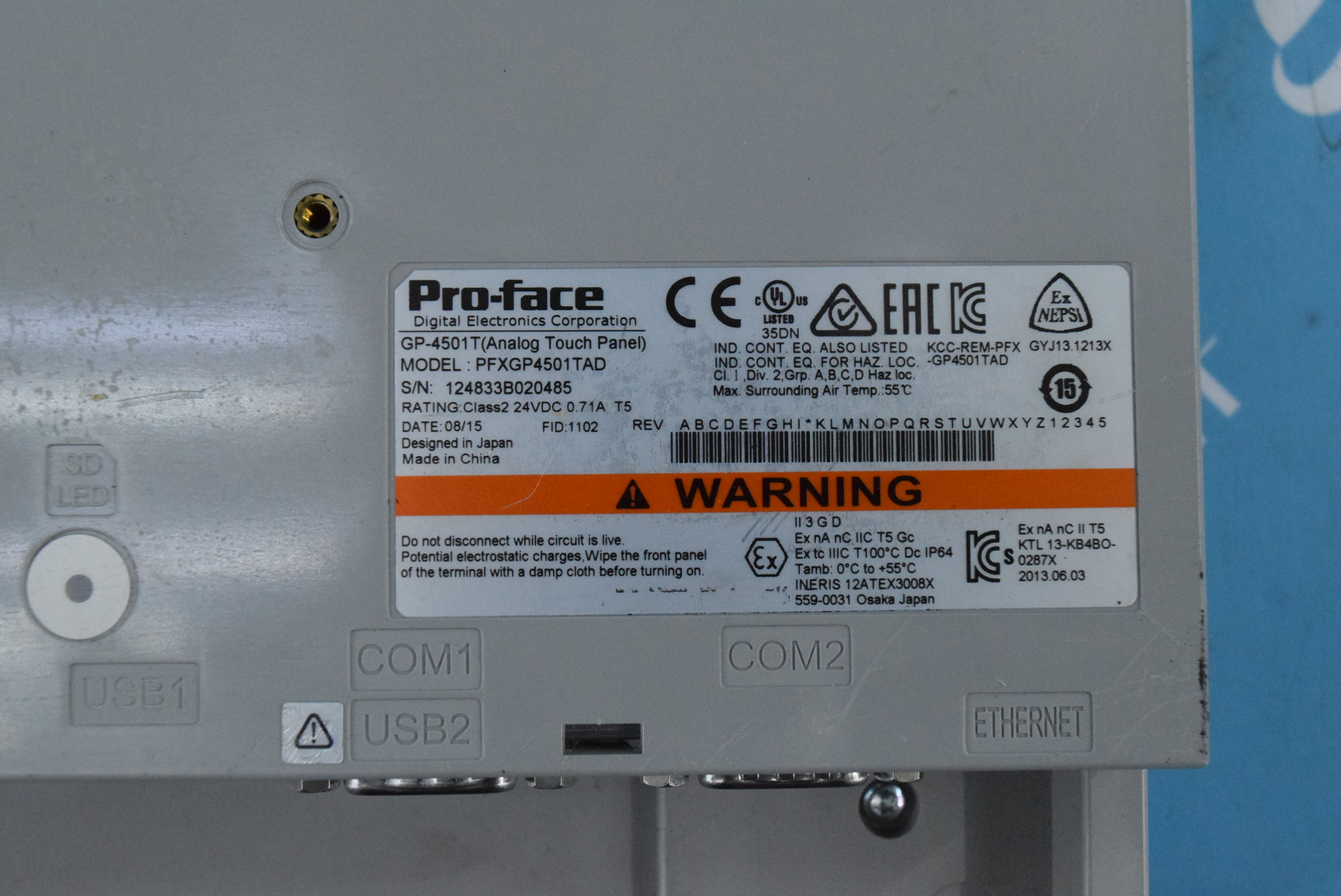 MANUFACTURER : PROFACE MODEL : PFXGP4501TAD GP-4501T