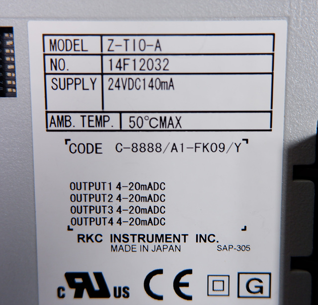 MANUFACTURER : RKC   MODEL : SUPPLY 24VDC140mA Z-TIO-A C-888/A1-FK09/Y