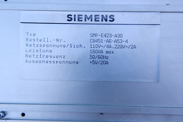 MANUFACTURER : SIEMENS MODEL : POWER SUPPLY SMP-E423-A30