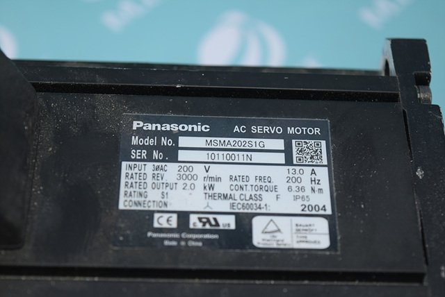 MANUFACTURER : PANASONIC MODEL : AC SERVO MOTOR MSMA202S1G