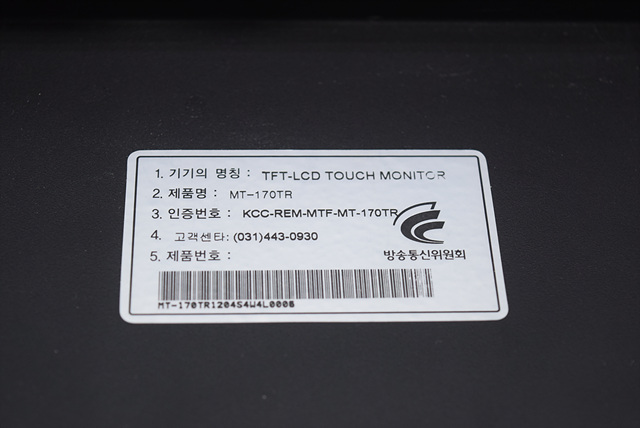 제조사 : 모델명 : TFT-LCD TOUCH MONITOR MT-170TR