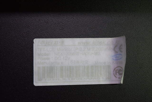 제조사 : KIOSK   모델명 : TFT LCD MONITOR NEX190MRT-IA3U-MS