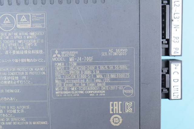 MANUFACTURER : MITSUBISHI MODEL : SERVO DRIVER MR-J4-70GF
