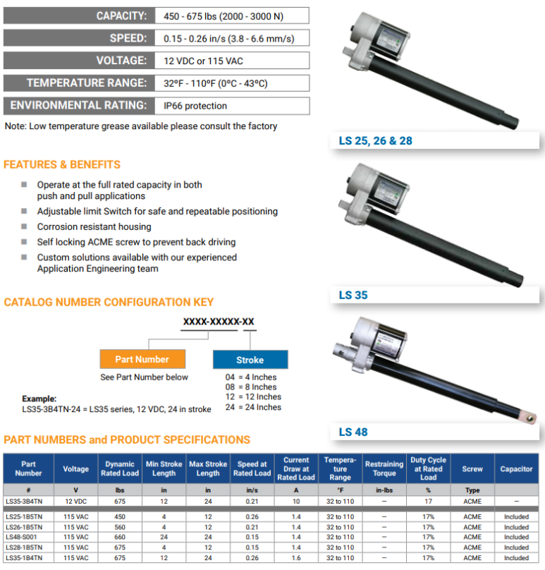 [수입판매] Duff-Norton LS25-1B5TN-08 Electric Linear Actuator