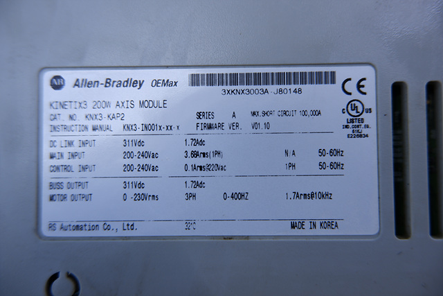 MANUFACTURER : ALLEN-BRADLEY MODEL : KINETIX3 200W AXIS MODULE KNX3-KAP2