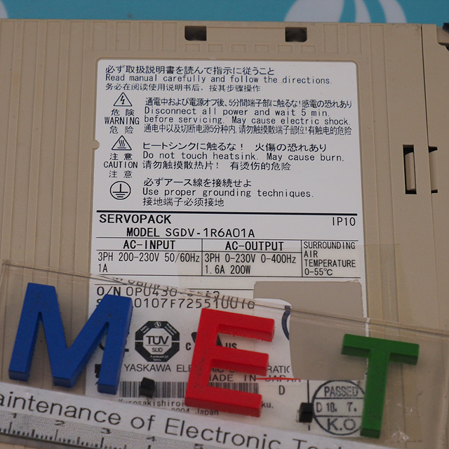 MANUFACTURER : YASKAWA MODEL : SERVOPACK SGDV-1R6A01A